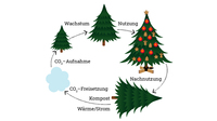 Ein Klick auf die Kacheln verrät mehr über Klima, Energie und Entsorgung der Weihnachtsbäume.